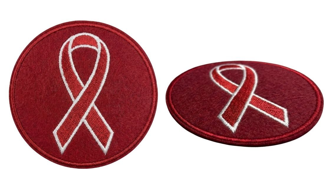 Embroidered awareness ribbon patches feature raised stitching and a classic textured appearance, making them ideal for bold designs, solid colors, and long-lasting use on uniforms, jackets, and bags.